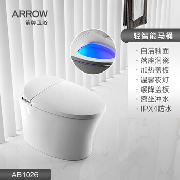 箭牌AB1026-U智能马桶箭牌智能马桶千挑万选,终于把你带回家,性价比真的特别高,外观设计时尚大方,体贴入微,泡泡盾可以很好的防止水溅,做工精细,线条流畅,雷达反映敏捷,灯光柔和,喷头出入顺滑无声,水流细腻水温舒适!强烈推荐这个品牌!