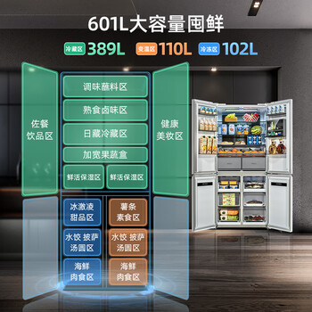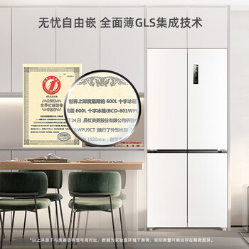 美菱(MELING)【无忧嵌】601升十字对开多门电冰箱一级变频全空间净化底部散热BCD-601WPU9CT陶瓷白到手价格不高于4999元。