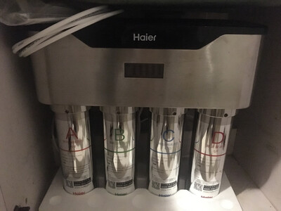 海尔HP-45净水器海尔800G净水器物流速度快,包装完好无损中午与海尔售后联系,当天下午师傅就上门安装了,师傅按装技术熟练,一会就按装完毕!u出水流速快,机器声音也不大,纯水水质在5!非常棒!机器安装好了,很敬业,净水器质量很好,机身小巧,占用空间小,水流很大水质从净化前128,降到6,健康的投入还是必要的